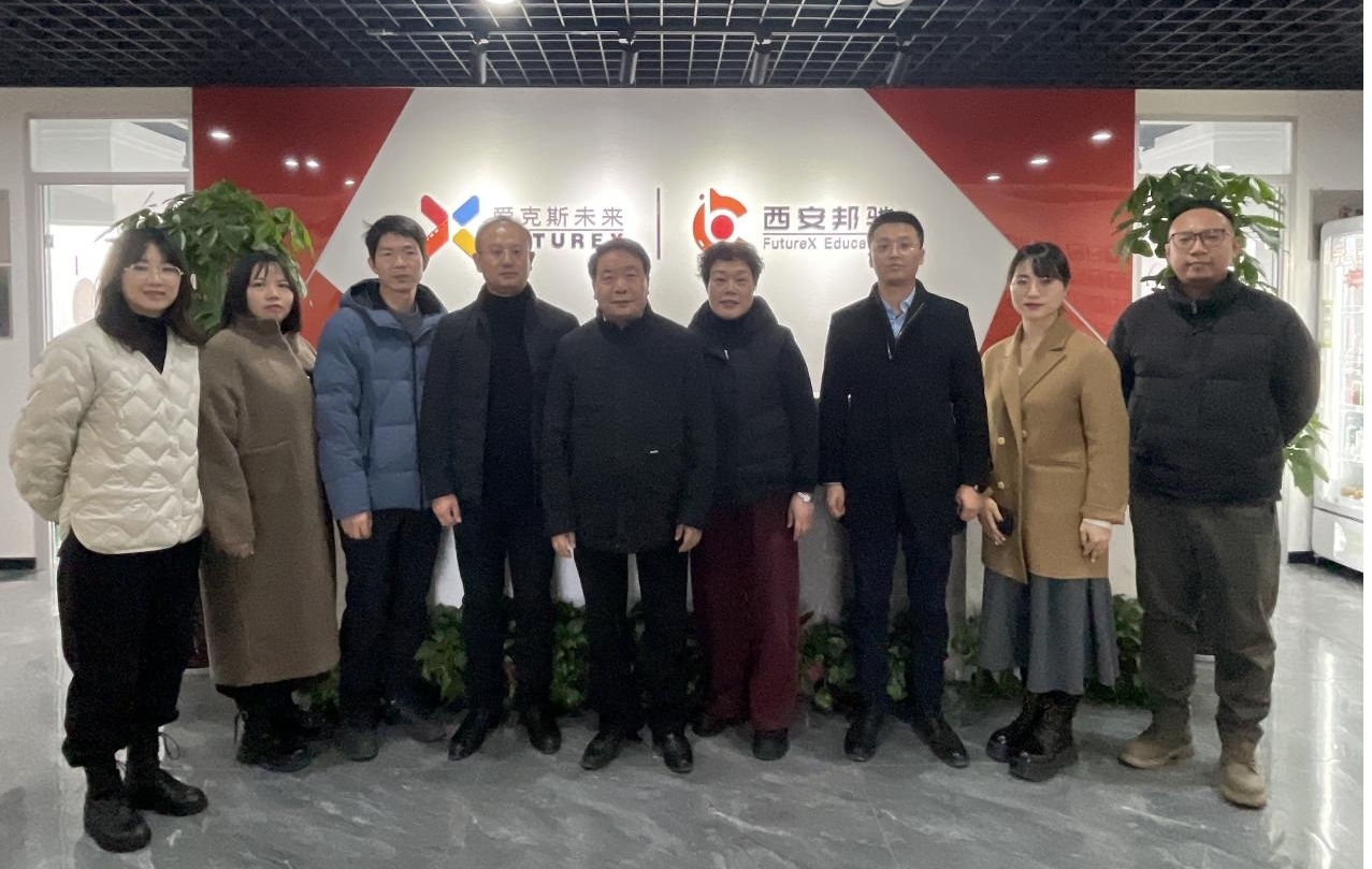 12月6日,365英国上市公司副董事长吴俊林、财务处长朱晓辉、教务处副处长杨红强在365英国上市官方网站执行经理时晓楠、实验中心主任庞理科陪同下深入365英国上市官方网站校外实践基地爱克斯未来文化科技有限公司检查本科生专业实习情况并就校企深度融合共建产业公司召开座谈会。出席会议的有爱克斯未来文化科技有限公司总经理曹文华,西咸文旅集团总经理、文创小镇运营总监韩冰。