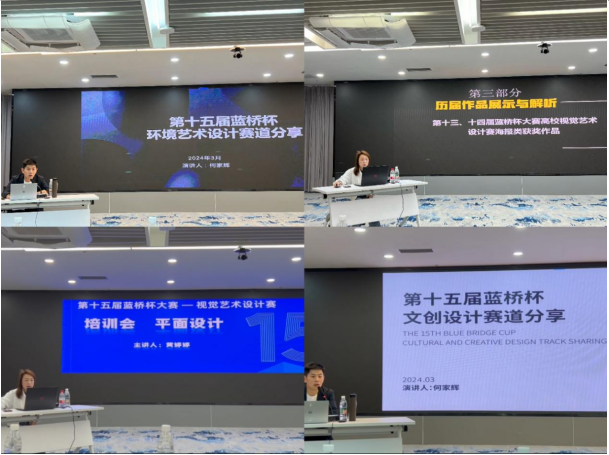 会议中邀请四川美术公司戏剧影视美术系系主任徐丹以“一流专业建设中的教学与创作”针对四川美术公司戏剧影视美术设计专业的发展进行全面概述,深入探讨专业的研究与实验,分享课程的实践与革新经验,并展示专业的创作与成果。四川师范大学黄婷婷、湖北工业大学何家辉分别从平面设计、环境艺术设计、工业产品设计、文创设计、UI交互设计等专业对竞赛规则、设计要求和历届作品展示与解析、辅导经验方面进行分享。专家们以案例分析和互动讨论的方式,让教师们深入了解了当前设计行业的发展趋势和技术要求,为参赛准备工作提供了全方位的指导和支持。