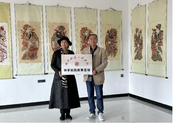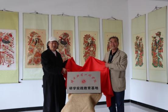 10月31日,在凤翔县南肖里村“邰立平凤翔木版年画传习中心”进行参观交流,并举行了“研学实践教育基地挂牌签约仪式”。吴昊经理和邰立平先生共同为基地揭牌,“研学实践教育基地”正式挂牌成立。吴昊经理表达了对凤翔木版年画代表性传承人邰立平大师的敬意,并对今后的非遗文化传承研学教育发展提出期望,希望广大师生以研学基地建设为契机,积极开展地域非遗文化资源的挖掘、开发和传承教育,并结合我们的设计专业进行创新设计,从实践中不断增强文化认同、坚定文化自信,做中华优秀传统文化的学习者、践行者、传承者。