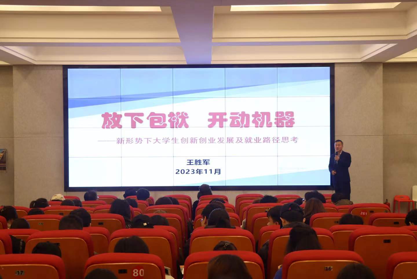 为了让同学们更好地认识到做好职业生涯规划的重要性,王胜军主任从自身经历出发,分享了自己在过去的学习、工作经历和生活中总结出的宝贵经验,引导同学们树立正确的就业观和择业观。他指出,大学的目标是要把员工培养成一个全面发展的人,老员工应当以国家和社会的需求为导向,学会思考和适应社会,在实践中确立自己未来的发展目标,在学习锻炼中成长成才。
