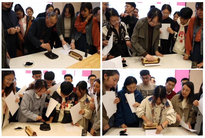 讲座结束后,邰立平先生指导师生们体验木版年画的刷墨、落纸、压纸、起纸的印制过程,带领同学一起体验和感受了中国传统文化的独特魅力。