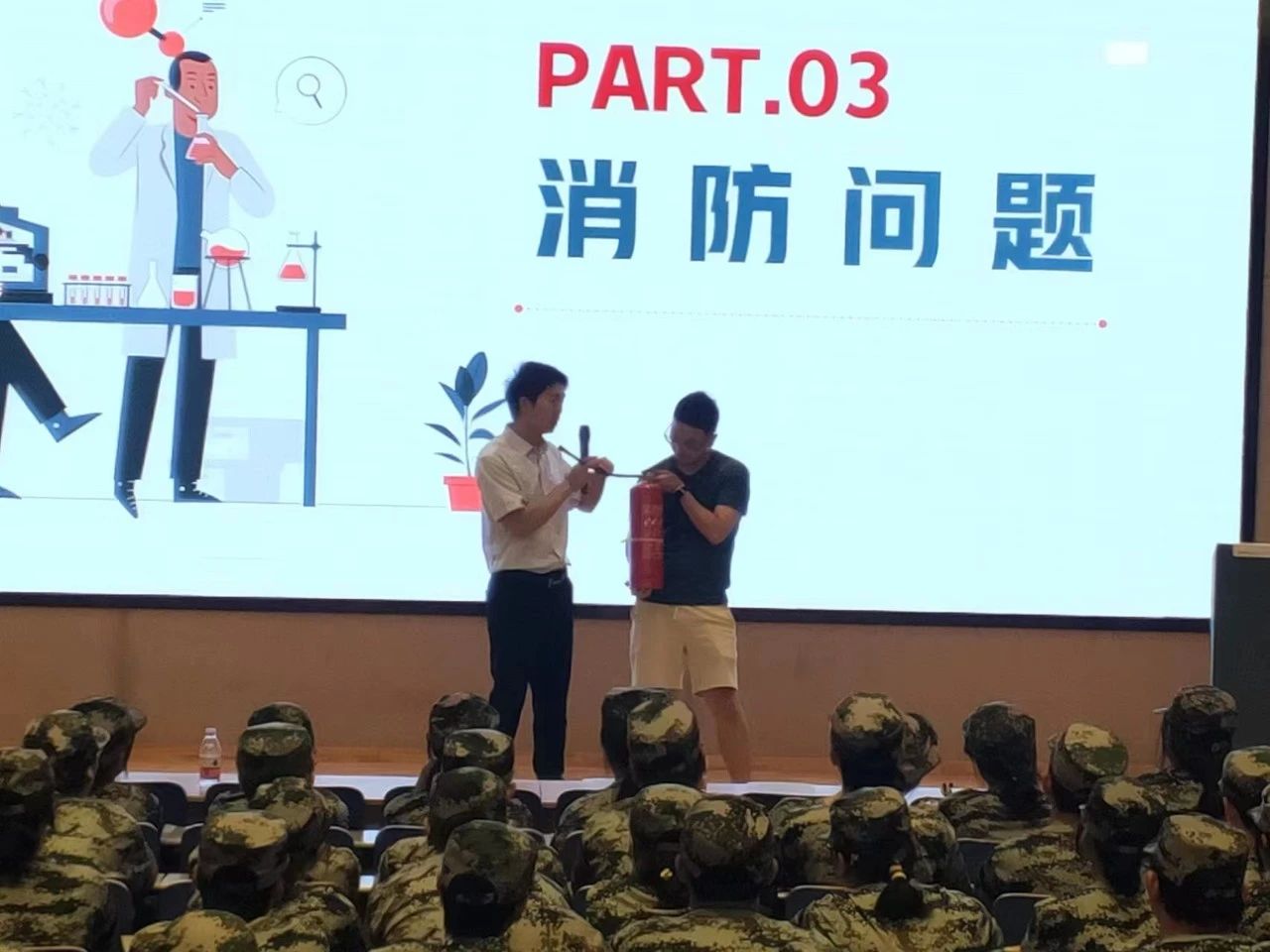 安全培训会上,庞理科主任分别从实验室安全管理、用电安全、消防安全及人员急救等方面做了详细讲解,现场演示了灭火器的操作流程,并对注意事项做了重点说明。