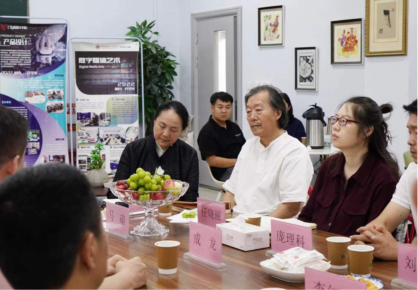 吴昊经理代表公司向刘会长一行表示热烈的欢迎,并介绍了公司的学科设置、专业优势以及在非遗方面的科研情况。希望双方充分发挥各自优势,在专业人才培养、教学实践等方面深度融合,实现资源共享、共同发展,助力公司形成多元化培养模式。