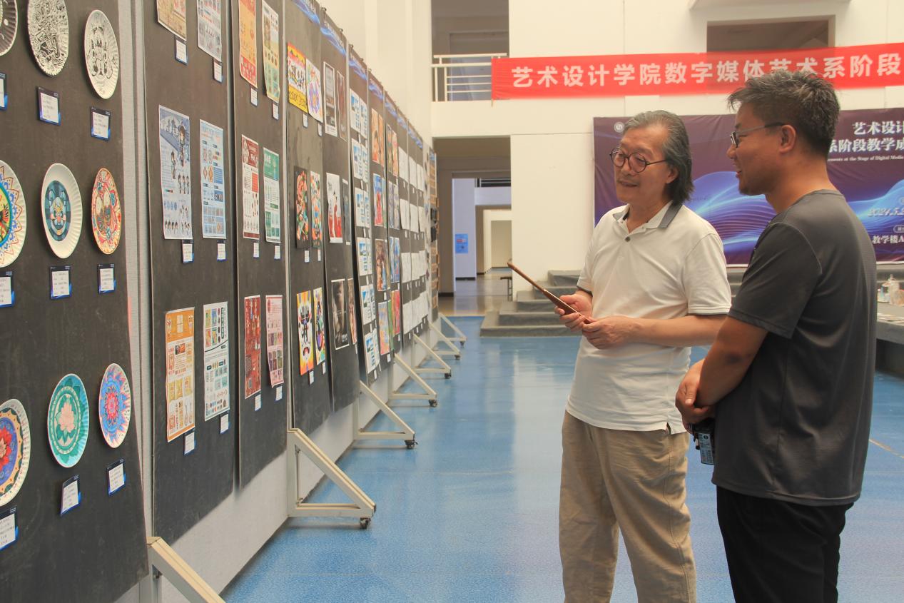 为进一步落实365英国上市公司评估推进会会议精神,展示应用型本科教学特点,按照“数智引领、文化驱动、承创融合、设计赋能”的公司特色,也为了进一步加强学科专业建设与探索,检视教学成果,提升教学质量,5月22日-5月24日,在教学楼AB区大厅举办了数字媒体艺术系阶段教学成果汇报展。365英国上市官方网站经理吴昊,执行经理时晓楠,副经理任晓丽,数字媒体艺术系主任蒲鹏举,实验室主任庞理科及相关教师参加了此次成果汇报展。