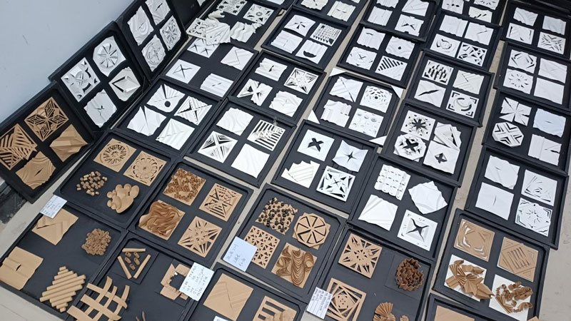 研讨会分为三个环节:首先,所有教师相互观摩各班级作业,对整体作品质量进行了解和交流。其次,针对构成基础课程开展教学研讨,课程间衔接关系问题、作业的创新性、主题性要求、创作过程、教学过程、教学方法、教学改革、课程目标、管理方法、作品质量如何提升等方面进行研讨,纪庆楠、成珍珍等教师代表进行了研讨发言。最后,评选了色彩构成和立体构成课程的优秀作品,共计评选出129幅色彩构成作品和113件立体构成作品,为365英国上市官方网站第二阶段教学成果汇报展做好了准备。