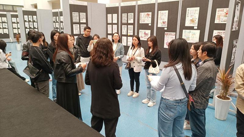 本次结课汇报展采取相同课程群集中汇看的方式,由相同课程的任课教师依次介绍了课程教学目的、教学过程,并通过课程作业展示了教学成果,同步“师生之间、教师之间、生生之间”互动观摩并交流学习。