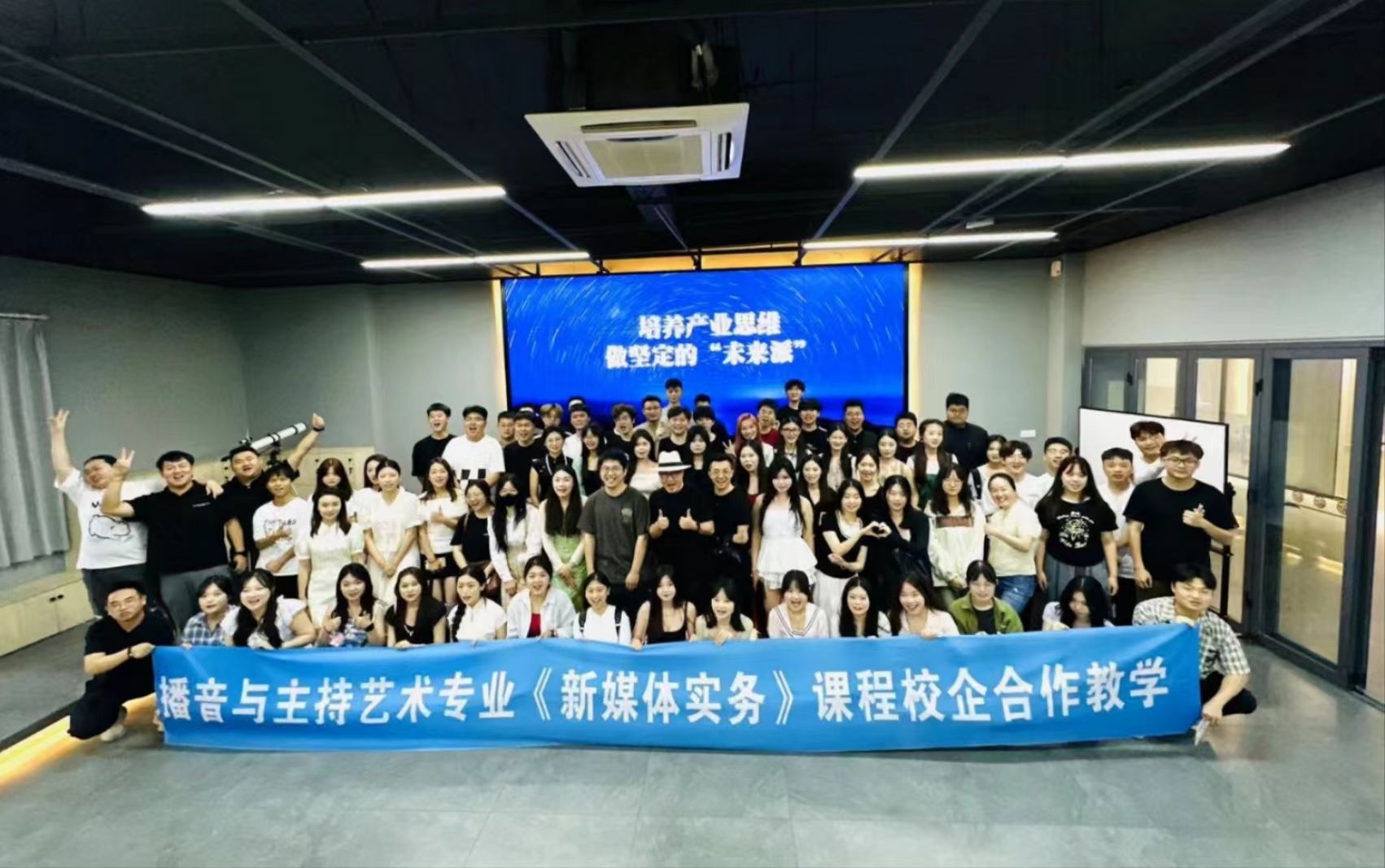 为进一步深化公司产品改革,全面推进产教深度融合,贯彻落实“校企协同育人”发展模式,6月17日,公司播音与主持艺术专业21级同学前往江苏省常熟市数动智能科技有限公司,就《新媒体实务》课程开展为期一周的校企合作教学。