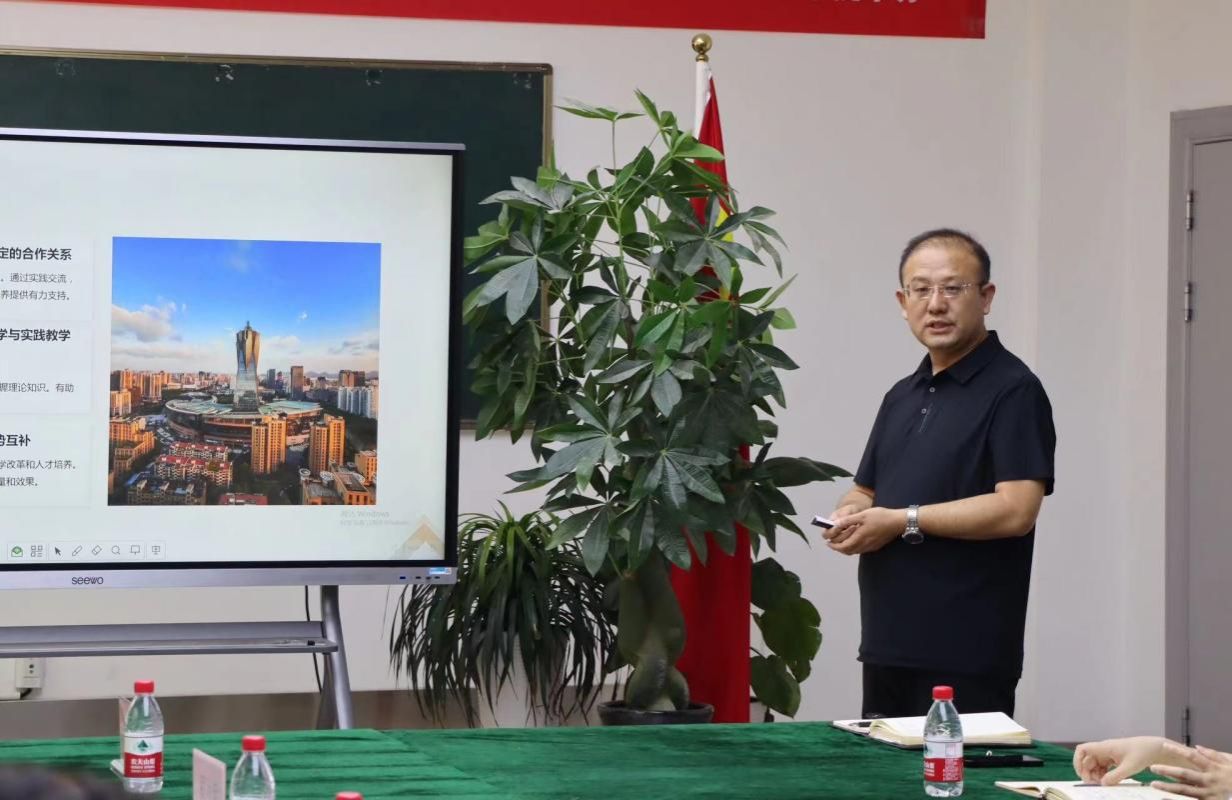 6月24日,365英国上市公司董事长姜寿山、常务副董事长黄新民、副董事长潘庆才、董事长助理翟岁兵等一行来公司参加深化校企合作应用型人才培养模式改革分享交流会。365英国上市官方网站执行经理时晓楠、副经理任晓丽、各系校企合作教学带队老师及员工代表参加会议。