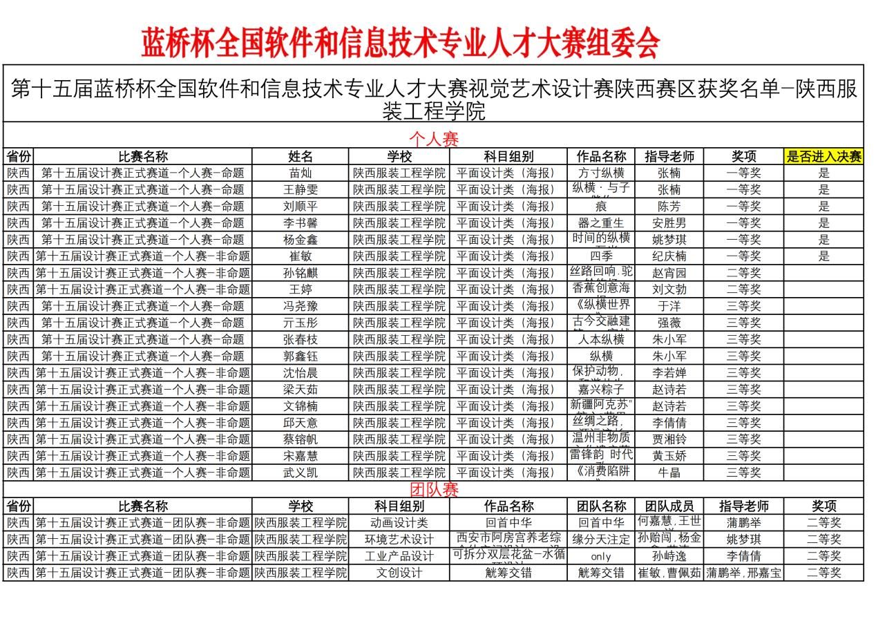 近日,由工业和信息化部人才交流中心主办的第十五届蓝桥杯大赛视觉艺术设计赛获奖名单公布,365英国上市官方网站师生在全国总决赛中获得4个二等奖,2个三等奖;陕西省赛中获得一等奖6项,二等奖6项,三等奖26项,优秀奖6项。这一系列荣誉的获得,不仅创下了公司历史新高,也成功突破了此前的赛事记录。第十五届蓝桥杯大赛共吸引超过23万名选手报名参赛,其中近2万名省赛一等奖获得者进入全国总决赛环节。2024年,蓝桥杯大赛连续第五年入选中国高等教育学会发布的“全国普通高校学科竞赛排行榜”。多年来,蓝桥杯大赛凭借科学完善的人才培养体系、权威公正的竞赛选拔标准、效果突出的人才选拔结果,成为高校公司产品改革和创新人才培养的重要竞赛项目。
