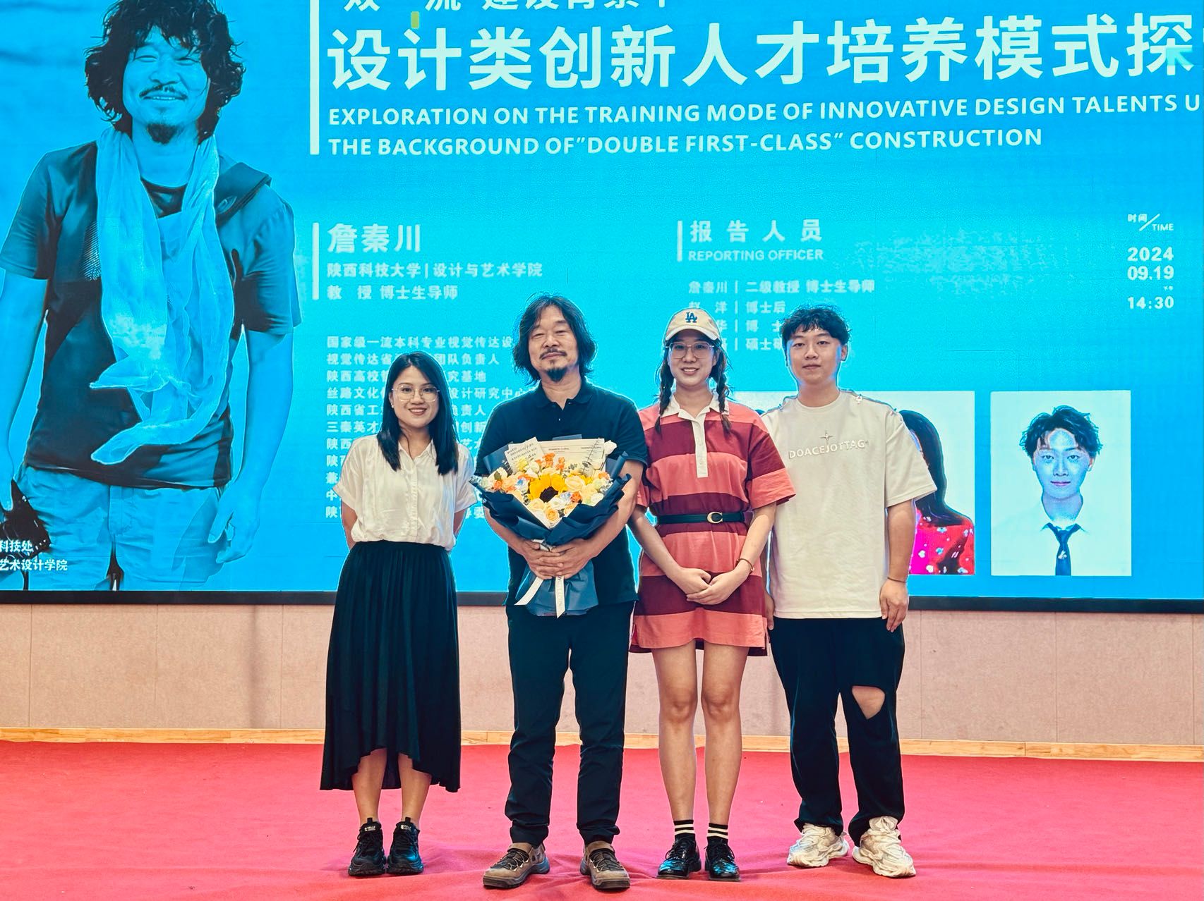 詹秦川教授首先从“双一流”建设的目标任务出发,全面系统的介绍了陕西科技大学设计与艺术公司的“3+4+5+5”双创教育人才培养体系。并对如何搭建培养体系和学科专业体系的创新、构建设计学类人才培养的赛创融合模式进行了详细的讲解,分享了团队在文化传承、乡村振兴、经典影像、助力军工制造等领域打造的五大集群成功案例。此外,詹秦川教授还结合陕西科技大学的学科专业建设、人才禀赋,向师生传授了如何搭建创赛平台,汇集华灿杯、蓝桥杯等新锐资源的成功经验。詹秦川教授的报告高屋建瓴、内容丰富,既有理论高度又有实践深度,令参加讲座的师生代表耳目一新,受益匪浅。