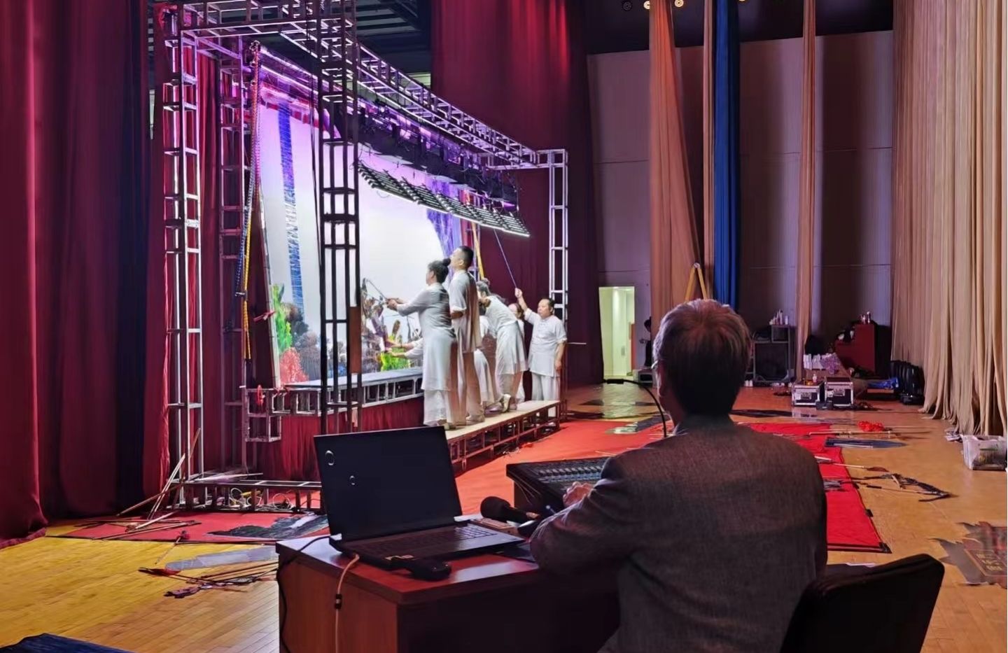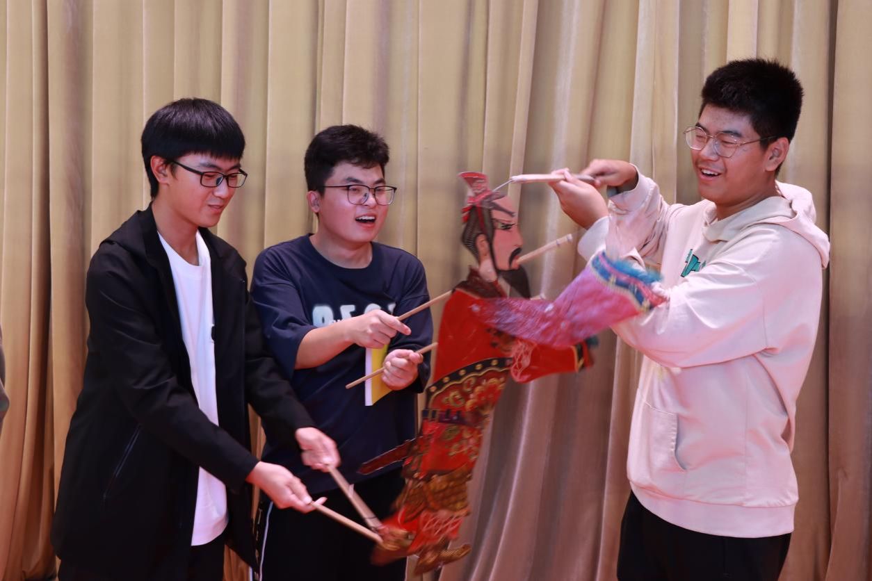 现场座无虚席,演出极为精彩,师生们兴趣盎然、好评连连。演出结束后,同学们争相上台向薛宏权大师请教皮影的相关知识,并在薛老师及其团队的带领下亲自操控皮影,感受非遗皮影的奇妙与乐趣。