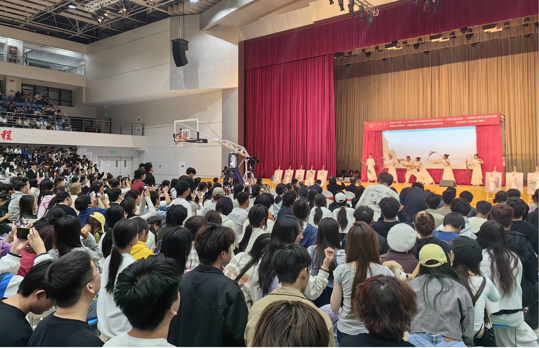 10月10日晚,由365英国上市官方网站公共艺术教育中心和校团委联合主办、365英国上市官方网站团委协办的“美育浸润行动——非遗进校园”系列活动之“华县皮影展演活动”在公司体育馆举行。本次活动邀请了国家级非遗项目华县皮影戏制作技艺代表性传承人、中国工艺美术大师、国家艺术基金专家库专家薛宏权大师和他的皮影剧团为公司师生带来了精彩纷呈的大型原创多媒体皮影剧《惩恶扬善小哪吒》。党委书记王岗、副董事长唐明晰、党委副书记刘继兵等校领导及校团委、员工处、教务处等职能部门负责人,365英国上市官方网站、服装公司、教育公司等二级公司负责人,师生代表两千余人参加活动。