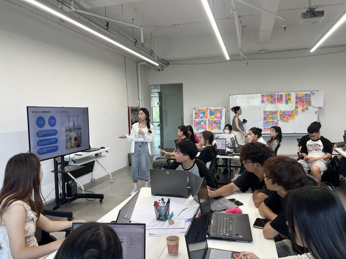 接下来的三天是紧张而充实的工作坊时间。企业教师保丽灵老师在第一天进行了《产品造型设计:从设计需求到设计传达》的授课,详细介绍了设计概要方法论及模板说明,并指导员工撰写设计概要和进行小组汇报分享设计概要报告。下午,介绍了设计冲刺工作坊方法和思维共创执行规则,同学们积极参与小组内部的高维度关键词风暴、归类投票、设计机会点头脑风暴等活动,并进行了Big idea报告模板讲解。