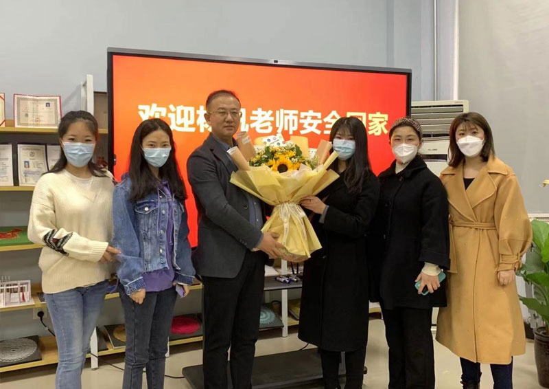 党总支书记、执行经理时晓楠和部分老师欢迎杨帆老师平安归来