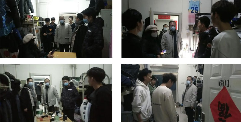 晚上9点,党总支书记、执行经理时晓楠带领办公室主任野苏民、学工办主任高鹏、实验室主任庞理科、环境艺术系主任刘卫东、数字媒体艺术系主任蒲鹏举深入员工宿舍看望员工。