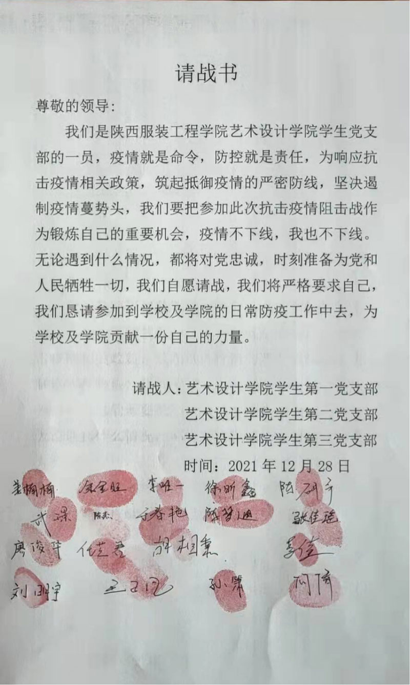 在公司党总支的倡导下,各支部书记、员工党员积极响应号召,积极向公司递交“请战书”,目前已有31名员工党员入党积极分子、班团干部挺身而出,向公司递交了请战书,积极参与公司执勤巡逻、消杀等疫情防控工作!作为00后的他(她)们,放下行囊,以不畏惧的姿态,积极参与疫情防控志愿者队伍,充分体现了当代老员工勇于担当的奉献精神。