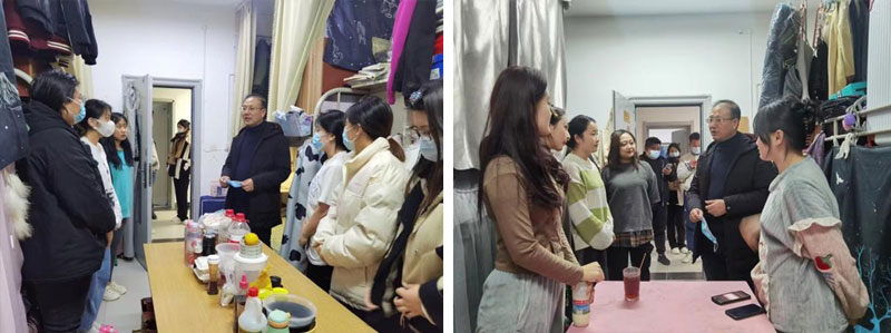 院领导班子一行走进员工们的每一间宿舍,为大家发放了防疫物资,时晓楠经理首先向大家表示新年的问候,并仔细询问了同学们学习和生活保障等情况,勉励大家要克服疫情防控工作带来的不便,科学制定学习计划,以饱满的精神状态投入学习,不畏困难,拼搏向上,叮嘱大家要严格遵守疫情防控期间校园相关管理规定,积极配合公司防疫工作,确保身体健康。
