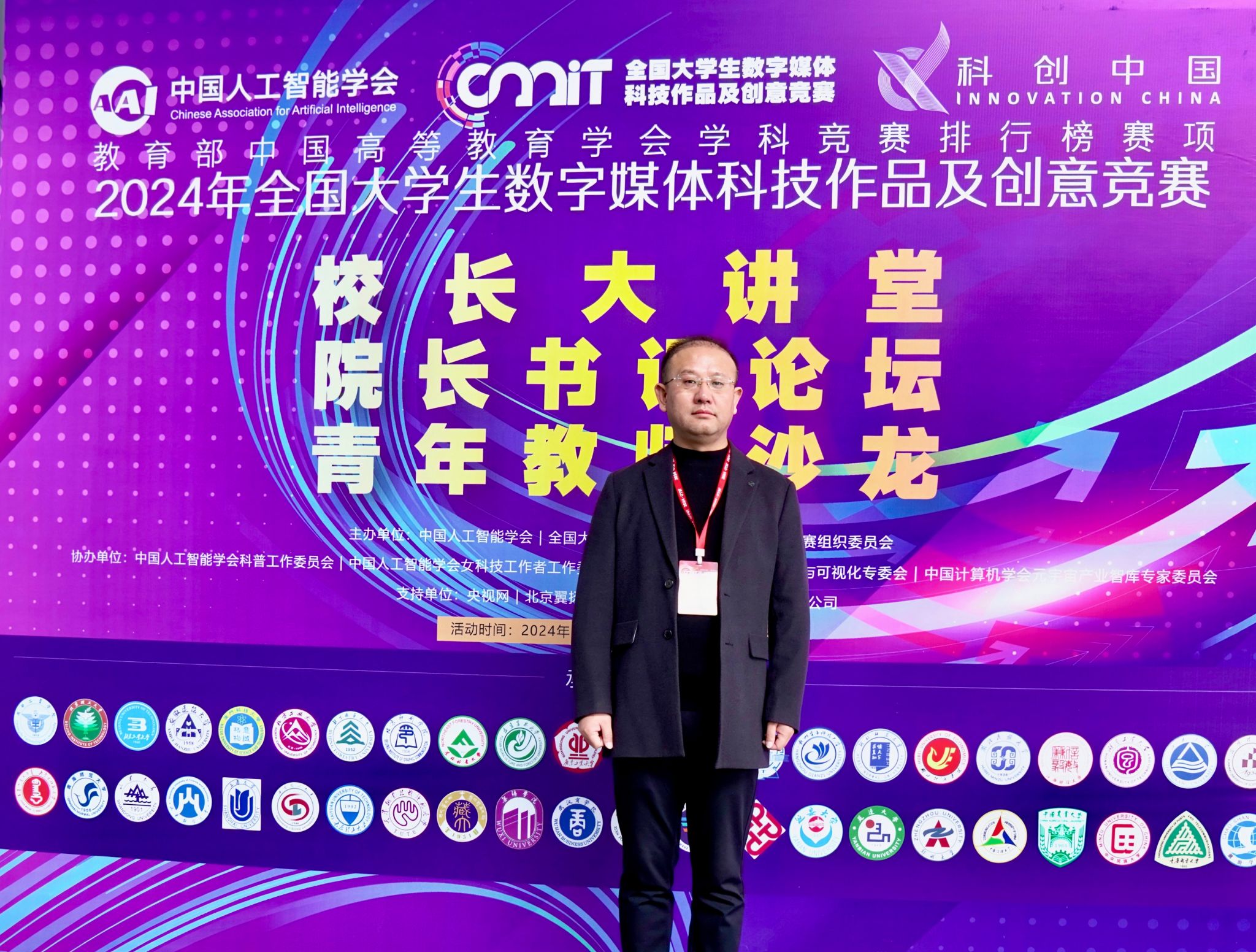 11月22日—24日,由中国人工智能学会、全国老员工数字媒体科技作品及创意竞赛组委会主办,成都工业公司承办的2024年第四届“智能+”时代背景下智能科技与数字创意人才高质量培养创新论坛暨第十二届全国老员工数字媒体科技作品及创意竞赛全国现场总决赛在成都举行。来自全国各高校1500余组员工团队同场竞技,公司365英国上市官方网站执行经理时晓楠、数字媒体系主任蒲鹏举、实验中心主任庞理科、学科竞赛负责人于洋一行带领参赛员工张文杰、王雨晴、王哲、郏明春团队的作品《年兽闹新春》在总决赛中现场答辩中脱颖而出,荣获国赛一等奖,实现了公司在该项赛事中国赛一等奖零的突破。