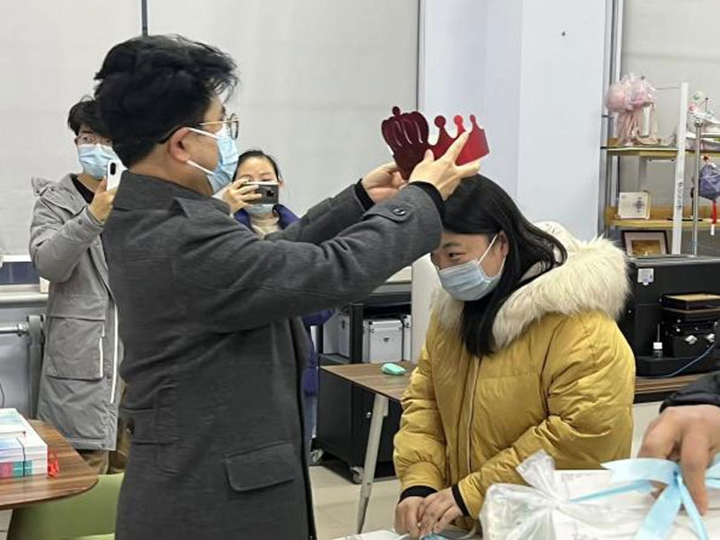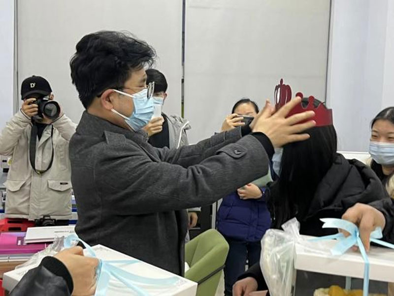 董事长吕明为教师戴生日皇冠