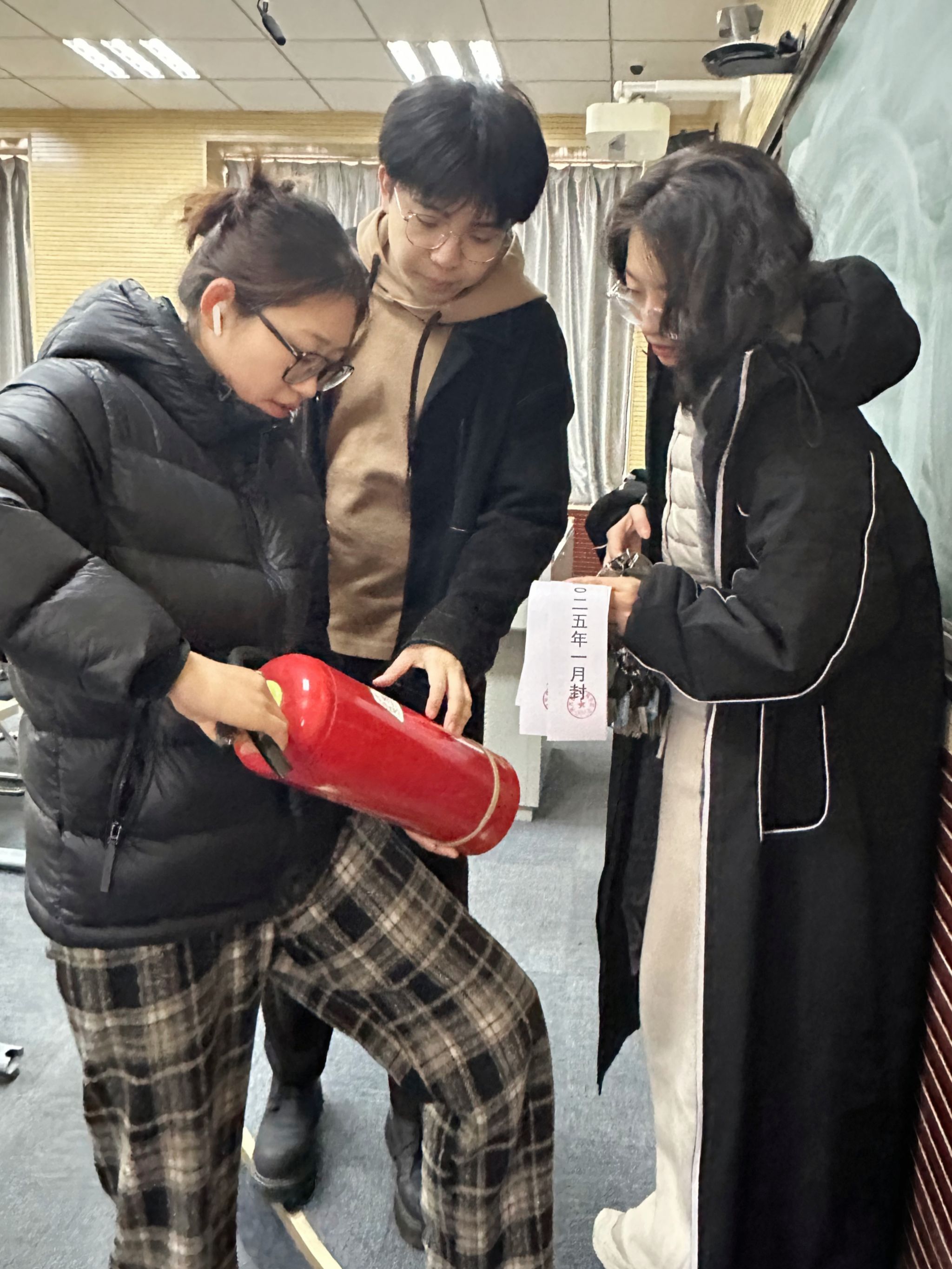 本次检查工作主要涉及实验室水电、消防、仪器设备等方面的安全情况。重点检查了室内用水、用电安全及卫生情况。在检查过程中,对所有实验室电器使用是否规范,疏散通道、安全出口是否畅通,消防设施运行是否正常等进行全面细致的检查,并锁好门窗,安全责任落实到人。认真做好寒假安全记录工作,对各实验室张贴封条,不得随意使用。