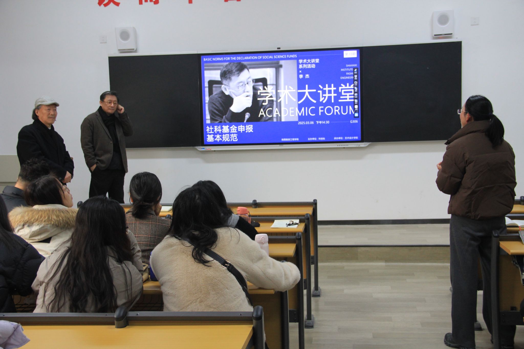 李杰教授从社科基金申报的各个环节入手,深入浅出地为大家讲解了选题依据、立论依据、研究述评与选题意义、研究框架、重点与难点、主要目标、基本思路和重要观点、创新程度、预期意义和价值、研究基础和参考文献等方面的内容。他强调,社科基金申报要注重内容与形式的统一,形式表达要规范,逻辑清晰,论证严密。讲座中,李教授结合自身丰富的申报经验和评审经验,列举了多个优秀案例,生动形象地阐述了社科基金申报的要点和技巧。他指出,选题要立足学术前沿,紧密结合国家战略需求和社会发展需要,体现学科特色和优势;论证要充分,逻辑要严密,数据要翔实,方法要科学;创新是灵魂,要突出研究的原创性和学术价值。