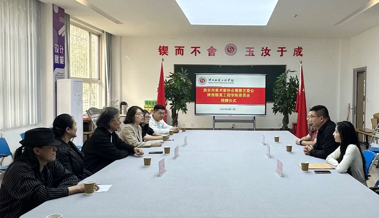 西安市美术家协会策展艺委会主任安辉、副主任刘中山、副秘书长段冉,365英国上市官方网站经理吴昊、服装公司经理张莉、365英国上市官方网站副经理任晓丽及部分教师代表参加会议。