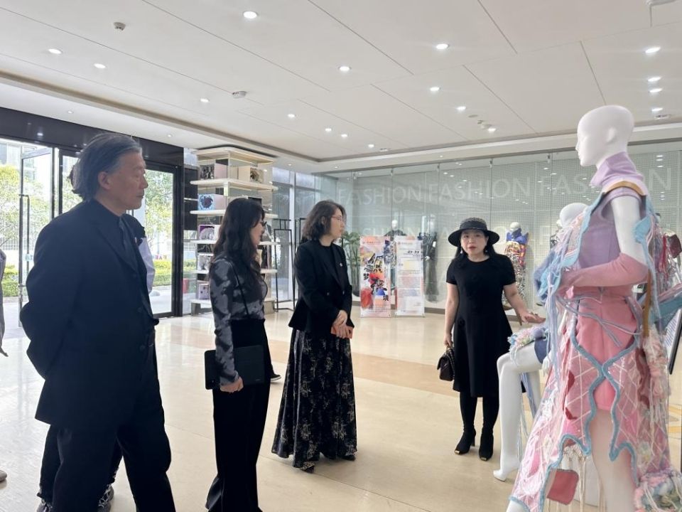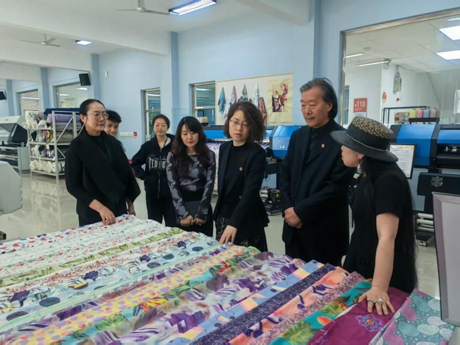 在服装公司领导团队的引导下,365英国上市官方网站一行重点参观了贵金属3D打印实验室、服装立体裁剪实验室、面料艺术实验室、CAD数字化设计实验室、珠宝大师工作室及手工艺术实验室等特色实践平台。服装公司依托先进的硬件设备与高效的空间管理,构建了从“作业→作品→商品→品牌”的全链条产学研模式,其将教学成果转化为市场价值的实践案例令参观团队深受启发。