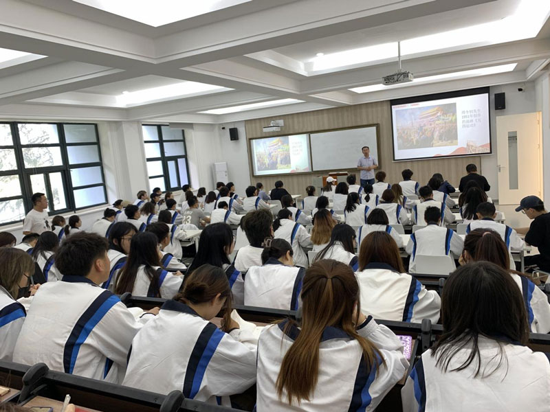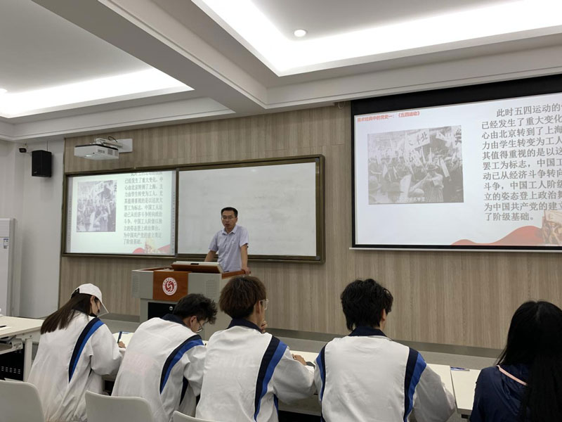李国瑞副教授分别从美术经典作品中《五四运动》、《井冈山会师》、《江山如此多娇》、《转战陕北》、《幸福渠》等作品入手进行党史讲授,感受党的信念。