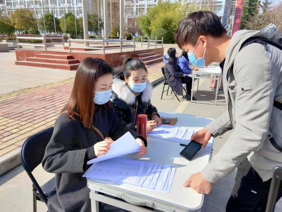 时晓楠副经理与辅导员、员工志愿者坚守员工报到检测一线,密切关注员工报到情况。开学准备是一项政治任务,事关广大师生生命安全和身心健康,严格执行报到流程,做到人员不漏,环节不差,坚决阻断疫情进入校园。
