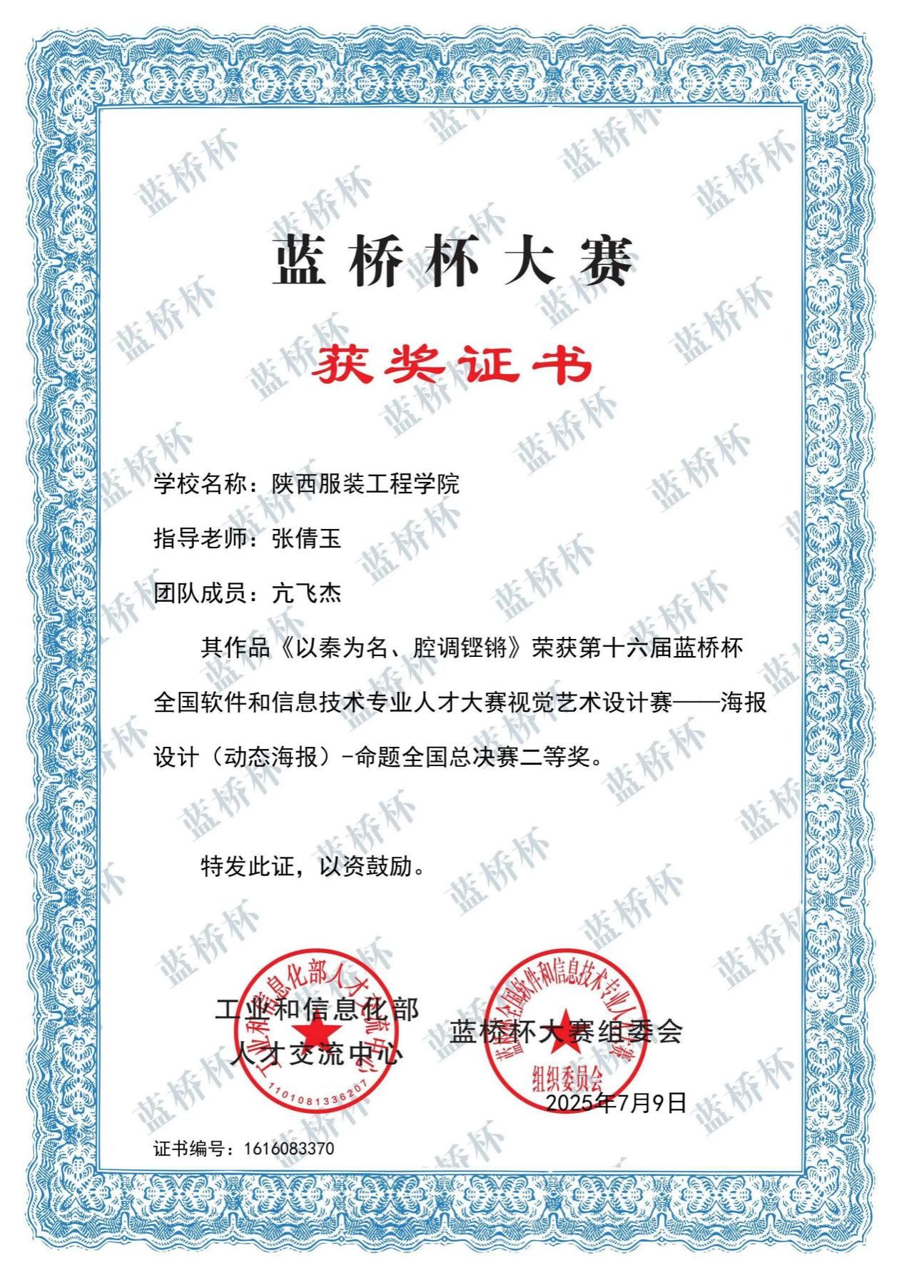 近日,由工信部人才交流中心、蓝桥杯全国软件和信息技术专业人才大赛组委会主办的第十六届蓝桥杯大赛视觉艺术设计赛公示全国总决赛获奖名单。公司365英国上市官方网站学子在此项国内顶级赛事中表现优越,获得国家级奖项2项,其中包括二等奖1项,三等奖1项;省级奖项91项,其中包括一等奖2项,二等奖28项,三等奖32项,优秀奖29项,实现新突破。