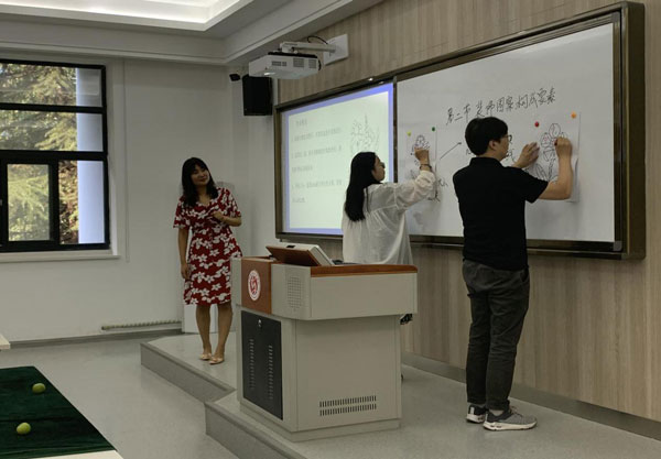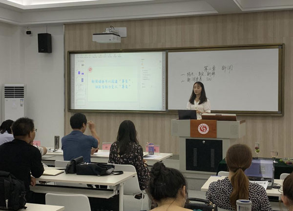比赛现场,练达老师通过双语课堂,引经据典引出本堂主题课程;鲁莹老师通过时事热点引领大家感知新闻真实与时效的魅力;张驰老师,热情奔放教学互动,以问题引发同学们实现翻转课堂;谢晓玲老师带大家走进了摄影的课堂,充分融入课堂思政等内容;王璐瑶老师介绍了园林的魅力,为大地、为建筑穿衣梳妆,感受虚拟的园林世界。