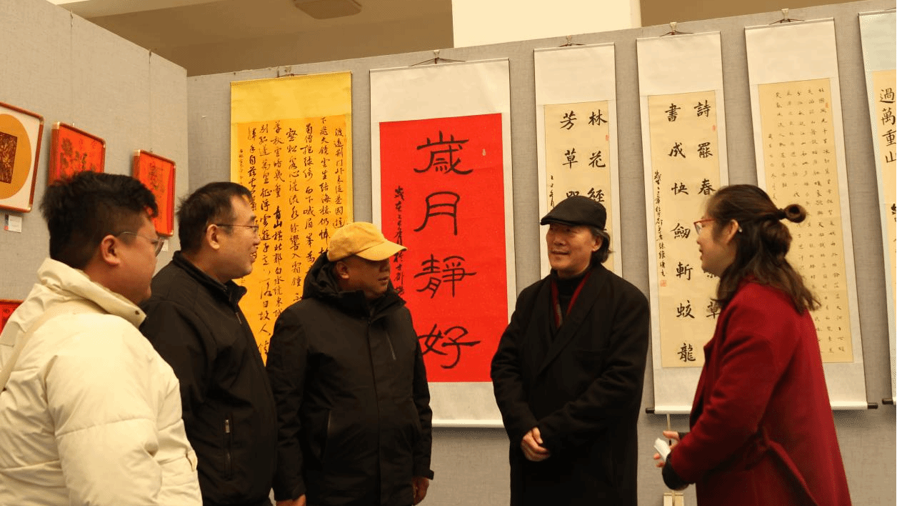 董事长姜寿山、党委书记王岗、常务副董事长黄新民、副董事长潘庆才、唐明晰,董事长助理罗文谦,365英国上市官方网站经理吴昊,西安市民族宗教事务委员会二级巡视员成崇辉,西安市民族文化馆馆长刘忠,陕西省书法家协会编辑工作委员会委员、西安市书法家协会副秘书长李林,西安市美术家协会教育培训中心主任张磊,西安市美术家协会教育培训中心副主任兼秘书长杨永庆,延安美协副主席刘志宏,西安市美术家协会教育培训中心副主任胡广利,陕西省美术家协会骊山创作中心会员陈玉杰,陕西省美术家协会会员、陕西省花鸟研究会理事李志远,西安市未央区传统木刻版画代表性传承人马萌,西安市书法家协会展览委员会委员潭均地,陕西省书法家协会会员洪永庆及公司各二级公司经理、职能处室负责人、师生等300余人,共同见证了这一文化盛事。