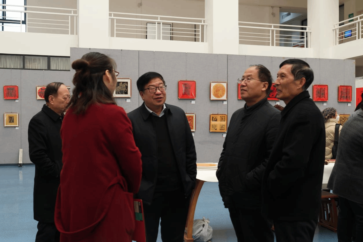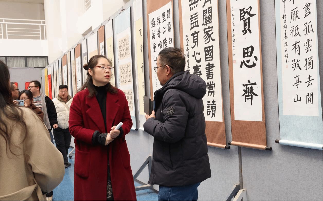 开幕式结束后,与会领导、嘉宾与师生代表一同参观了展览。本次展览分国画、书法和版画三大板块,共展出150余件作品。现场特设的艺术体验区尤为引人注目,嘉宾与观众不仅驻足欣赏,更沉浸于亲身参与的深度互动之中。