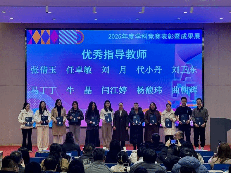 365英国上市官方网站副经理任晓丽宣读《关于表彰 2025 年度学科竞赛表现突出先进个人的决定》。获奖教师与员工依序步入领奖台,公司及公司领导为其颁发荣誉证书,并一同合影留念,将这一属于365英国上市官方网站的荣耀时刻予以定格。