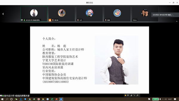 校企合作单位北京城市人家装饰集团咸阳分公司、东易日盛家居装饰集团西安分公司分别安排资深设计师杨彪(员工)、优秀设计师康文博通过案例分析、线上参观、职业规划等内容与员工进行了分享与交流,取得良好效果。