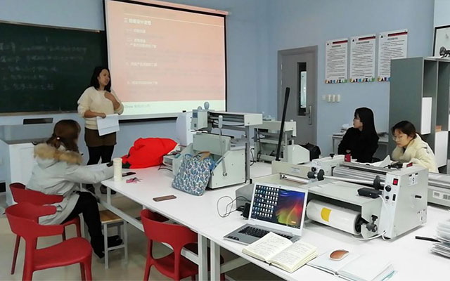 本次课堂主讲教师为视觉传达系的王金霞老师和代小丹老师,两位老师结合自己的实践经验,与“课程思政”相结合,将自己的实践成果及其心得传授给员工,授课内容充分,条理清晰。通过多媒体技术和板书相结合的方式,大量运用图片、视频、动画等资料,克服单纯板书信息量不足和幻灯片变换过快、员工不能及时记笔记的缺点,教学效果得到了进一步改善。授课完毕,视觉传达系系主任朱小军就改变传统授课模式,创新课堂教学方法,进行了点评。其他教师结合课堂教学体会进行了互评,提出了中肯的建议。最后就基础课程如何为专业课程服务,提高员工专业实践能力进行了综合讨论。
