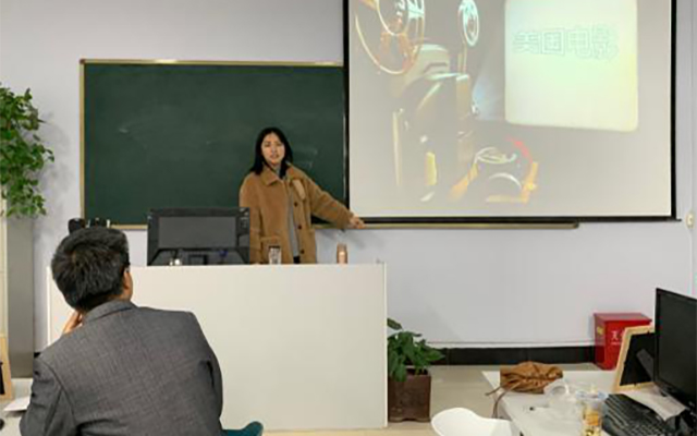 此次授课教师为张文婧老师,其中针对美国电影主线进行展开,以案例鉴赏方式进行拓展。张文静老师首先对本次课进行了线索疏导,进而对课堂进行了创设情景,创建舞台,激发员工的热情,鼓励员工去表达展示。张老师还将员工进行了分组讨论,以小组方式进行口头评述用以展示员工们的鉴赏能力,由此增强了员工的参与感。授课完毕,数字媒体艺术系系主任蒲鹏举进行了点评,其他教师进行了互评。最后针对课堂创新,翻转课堂问题进行了讨论。