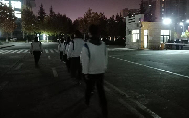 除了每天的执勤站岗工作,在陝服的校园中还有一支支以员工干部群体组织起来的巡逻队,无论天气有多寒冷,各员工干部群体总是整装待发的高昂情绪,以满腔热血的精神斗志来迎接每一天的巡逻。