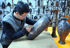 师傅正在雕刻黑陶表面1