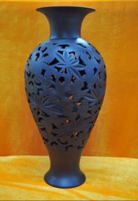 黑陶成品-《镂空花叶瓶》