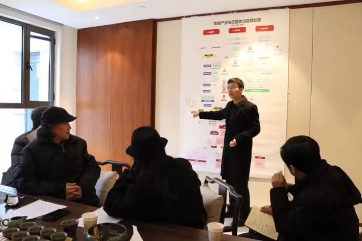 吴龙山副总经理详细为大家介绍了黄陵产业生态整体运营规划与思路,分享了黄帝陵文旅产业体系建设、数字IP体系建设、文化产品共创方向和后续合作的具体需求。他表示,黄陵历史文化厚重,具有广阔的发展前景,此次以黄陵文化园区为载体,通过社科课题、产业项目合作等路径展开交流,存在全盘考察、整体思考、系统设计的要求,希望双方能精准发挥特长,真诚互通有无,开展纵向、深度、长期持续性的合作,共同下好协同发展“一盘棋”,共同描绘深度融合“一幅图”。