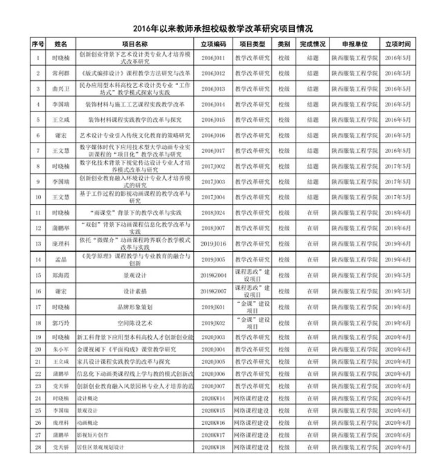 教师承担校级教学改革研究项目情况
