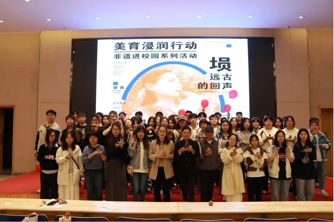 讲座上,梁苗老师首先梁苗老师从“埙”的历史发展进程”、“古往今来埙之形变”等方面为同学们做了生动详细的介绍,并为大家现场演奏了《秦腔即兴曲》《女儿情》《佳人伴孤灯》等经典曲目。古雅深沉、浑润醇厚的音色和优美的旋律赢得同学们阵阵喝彩。