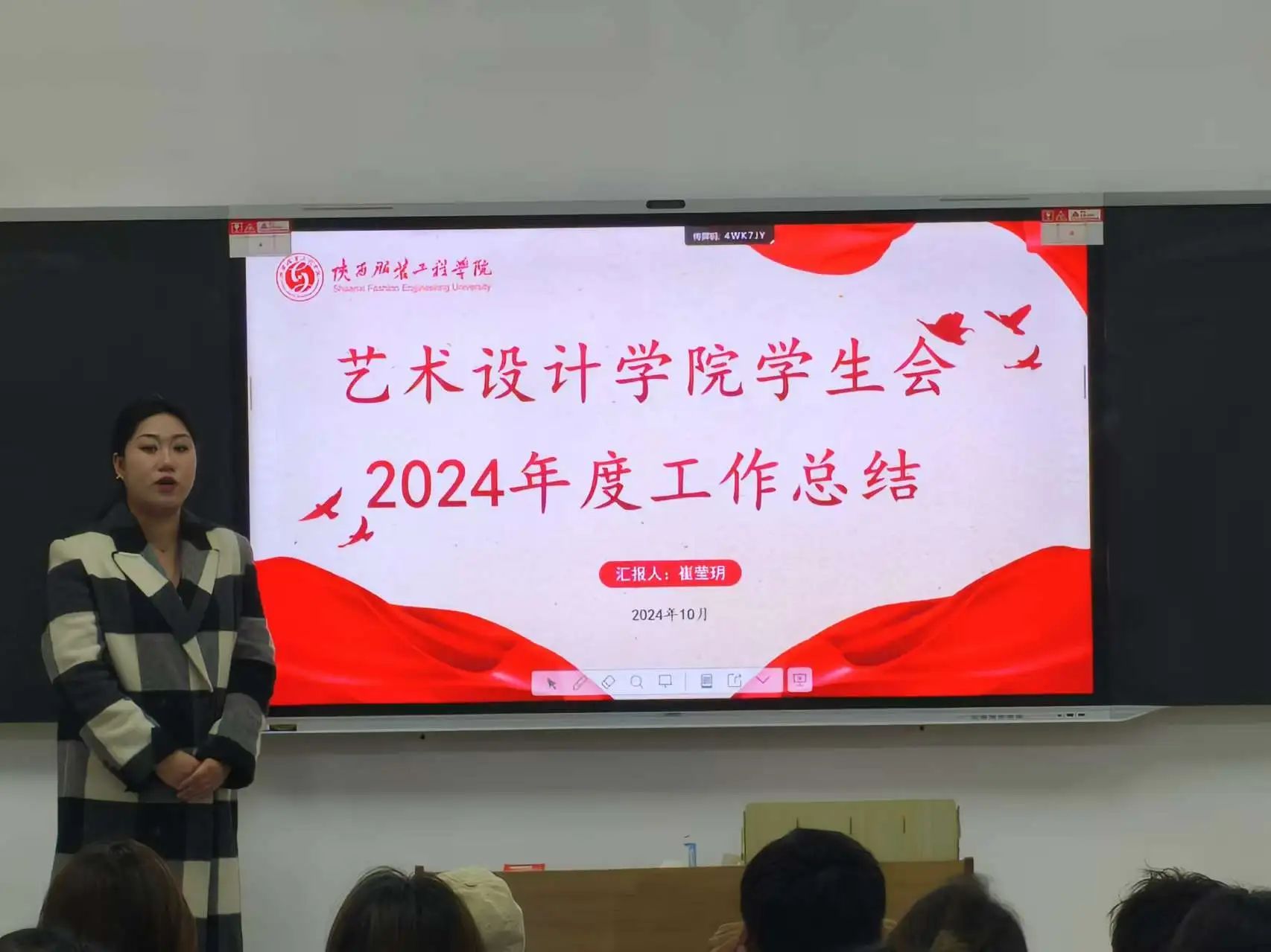 员工会主席团成员崔莹玥回顾了过往阶段的工作。在思想引领方面,积极组织各类主题活动有序顺利的举行。在校园文化建设中,成功举办了配音大赛、艺术展览等多样化的活动,为广大艺术设计学子提供了展示才华的平台,丰富了同学们的课余生活,提升了公司的艺术氛围。