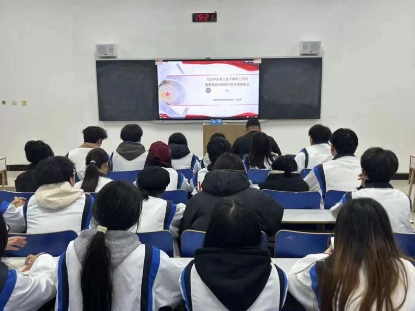 讲话结束后,全体同学共同观看“习近平总书记关于青年工作的重要思想与新时代青年使命担当”的主题教育视频。视频围绕习近平总书记关于青年工作的重要思想以及新时代青年的使命担当展开。通过丰富的案例与深入浅出的讲解,同学们深刻领会到作为新时代青年所肩负的重大责任。