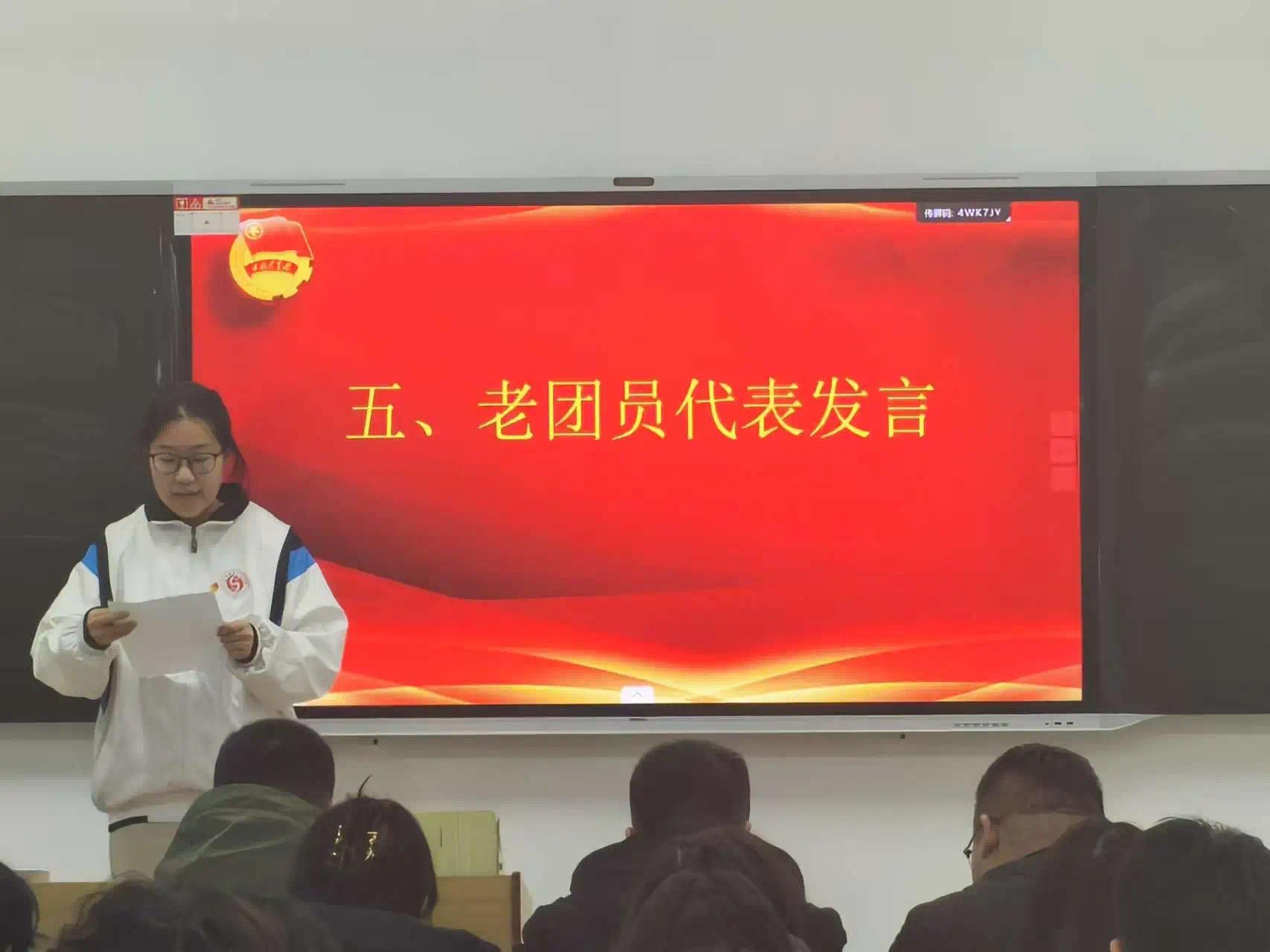 老团员代表同学的发言更是令人动容,她回顾了自己在团组织中的成长历程,讲述了参与志愿服务、校园文化活动以及努力学习的点滴收获。她提到,共青团是培养青年的大熔炉,在这里,大家学会担当、学会奉献、学会成长。她寄语新团员,要牢记团员身份,思想上追求进步,学习中勤奋钻研,生活里团结互助,时刻以高标准要求自己,传承共青团的优良传统,在新时代的浪潮中勇立潮头,为团旗增光添彩。