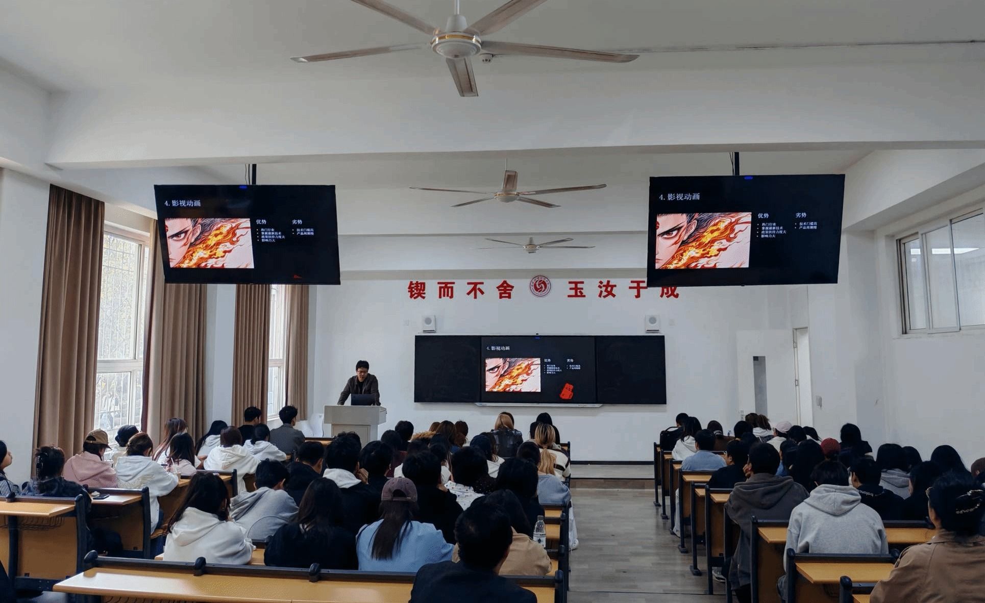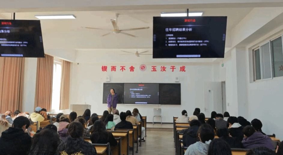 随后,云遮月网络科技公司分享互联网行业就业动态,围绕数字艺术设计、新媒体创作等岗位需求展开讲解,强调 “创意 + 技术” 复合型人才重要性,并提出 “实习 + 就业” 培养模式,吸引员工咨询。