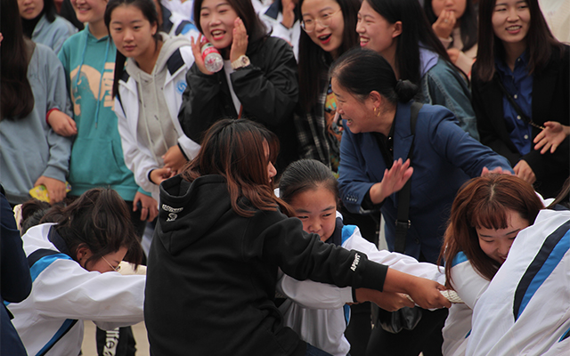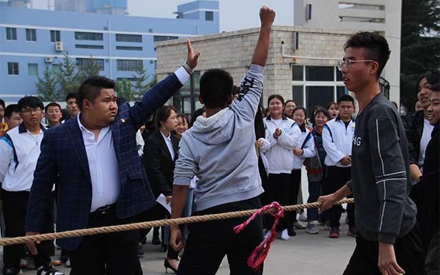 通过几次的拔河比赛,除了有同学们的饱满热情,还离不开每一位到场老师加油呐喊与助威,尤其是野苏民老师那高亢的呐喊,激情的动力,和动作上的指导为每一位参赛选手都在比赛上起到了莫大的鼓舞作用,拔河比赛的圆满成功离不开她的大力支持。