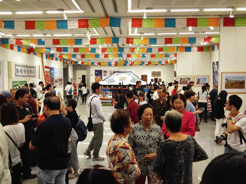 由曼谷中国文化中心、北京民族文化遗产保护基金会主办,北京中华民族博物院、四川省阿坝藏族羌族自治州文化广电新闻出版局承办的“天涯共此时——中国造.月满暹罗”文化遗产系列展览展示活动于9月23日晚上7时在曼谷中国文化中心开幕。中国驻泰国大使馆文化参赞、曼谷中国文化中心主任蓝素红、曼谷中国文化中心副主任张波、泰中艺术家联合会会长蔡义批、北京民族文化遗产保护基金会秘书长申楠、四川省阿坝藏族羌族自治州文化广电新闻出版局局长陈顺清等中泰两国的各界人士参加了此次活动。