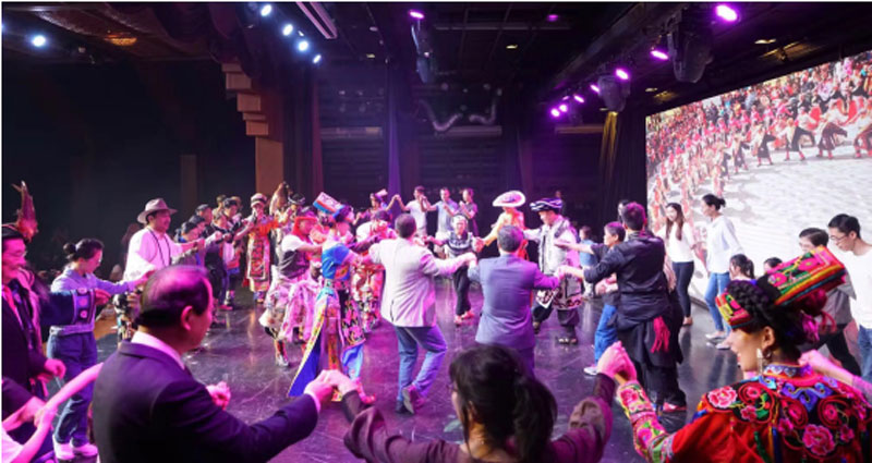 活动当天展厅内人头攒动,参观者络绎不绝,与文化遗产传承人频频互动;剧场内观众热情高涨,掌声不断,藏羌锅庄更是让两国人民拉起了友谊之手。